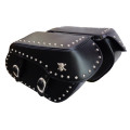 職人のハンドメイドによる丁寧かつ丈夫な作りのサドルバッグです。 ブラックにシルバーのスタッズを施しています。 シンプルで美しいデザインです。